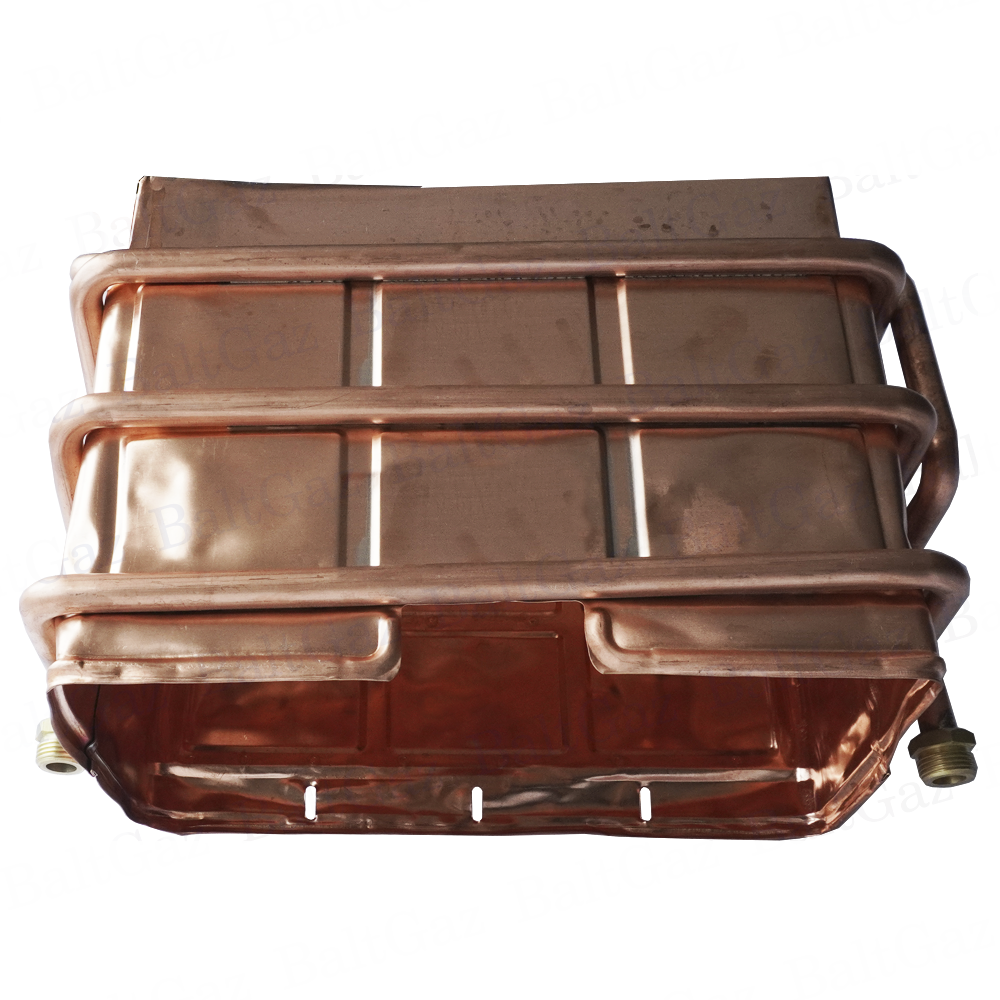 Теплообменник предназначен для передачи тепла от работающей горелки водонагревателей проточных газовых к воде, протекающей по его трубам, максимальным давлением 1000 кПа